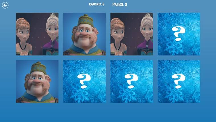 Kif tistgħu tifhmu mill-isem Frozen Match, li jiġi bmenus estremament sempliċi li ma jkunux ifur breklami, peress li hija logħba mfassla apposta għat-tfal, hija logħba ppreparata għat-tfal biex jiżviluppaw il-memorja viżiva tagħhom. Hemm tliet livelli ta diffikultà biex tilgħab, u hekk kif il-livell ta diffikultà jiżdied, in-numru ta kaxxi bil-karattri ħelu ta Disney jiżdied. Ma jvarjax minn logħob ieħor li jsib il-logħbiet ftermini ta gameplay.
